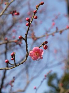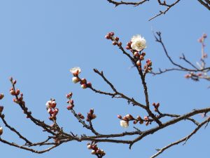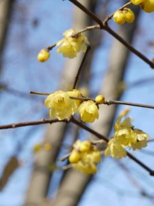 春の気配が少しずつ少しずつ、訪れています。小石川後楽園では、ロウバイが見頃を迎えていて、早咲きの梅が開花し始めていましたよ。