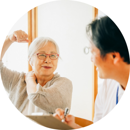 運動機能の維持・回復のための訓練、嚥下機能訓練などを行います。寝たきり予防のための生活リハビリを行い、合併症を予防します。福祉用具の活用、住宅改修などについての助言を行います。